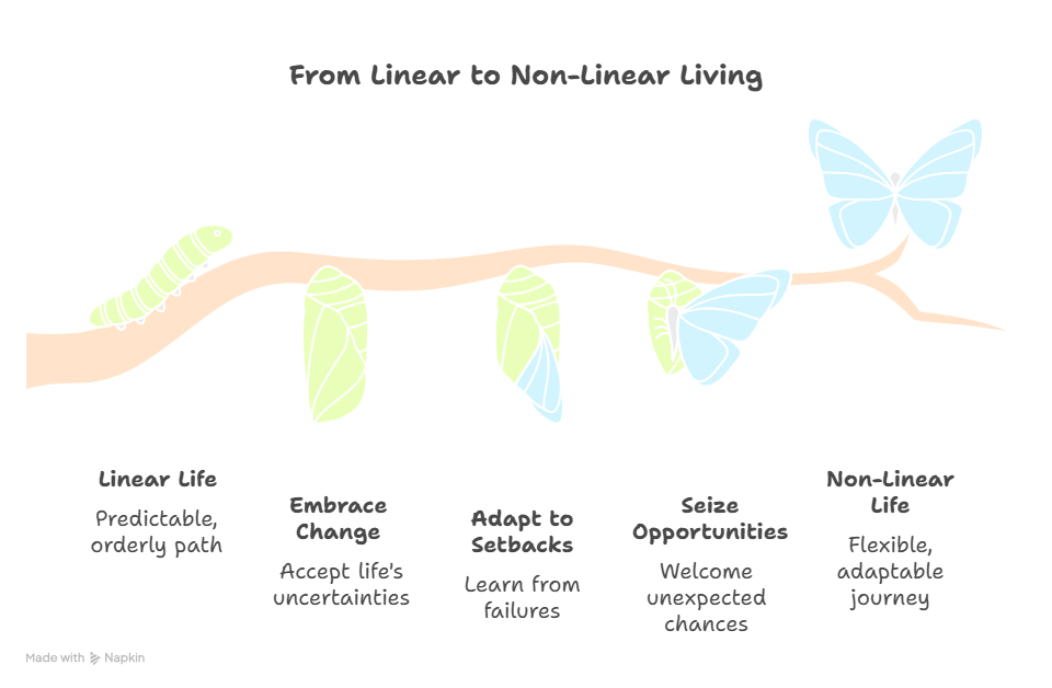 Both linear and non-linear approaches have value. The linear path provides stability, discipline, and security. But the non-linear path reflects how the world truly works. It is messy, uncertain, full of setbacks, and yet also rich with surprises and growth.