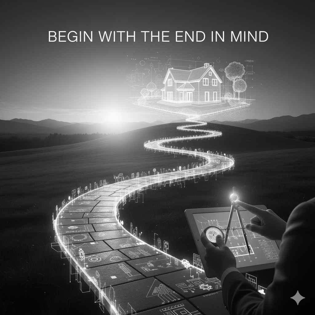 Stephen Covey, in The 7 Habits of Highly Effective People, called this habit “Begin with the End in Mind.” It means having a clear picture of where you want to go before you start moving. Visualizing the outcome before the first step, making decisions today through the lens of where you ultimately want to arrive.